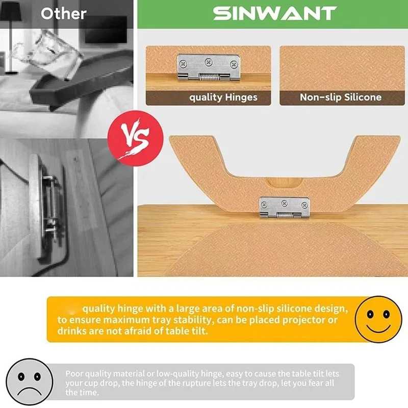 Double Protection Design – Afraid of shaking the desktop? The sofa arm clip on table high-quality hinges and non-slip silicone at the bottom guarantee stability during use and are not easy to shake. The double protection guarantees that you can rest assured that you can put your drink on the couch table.