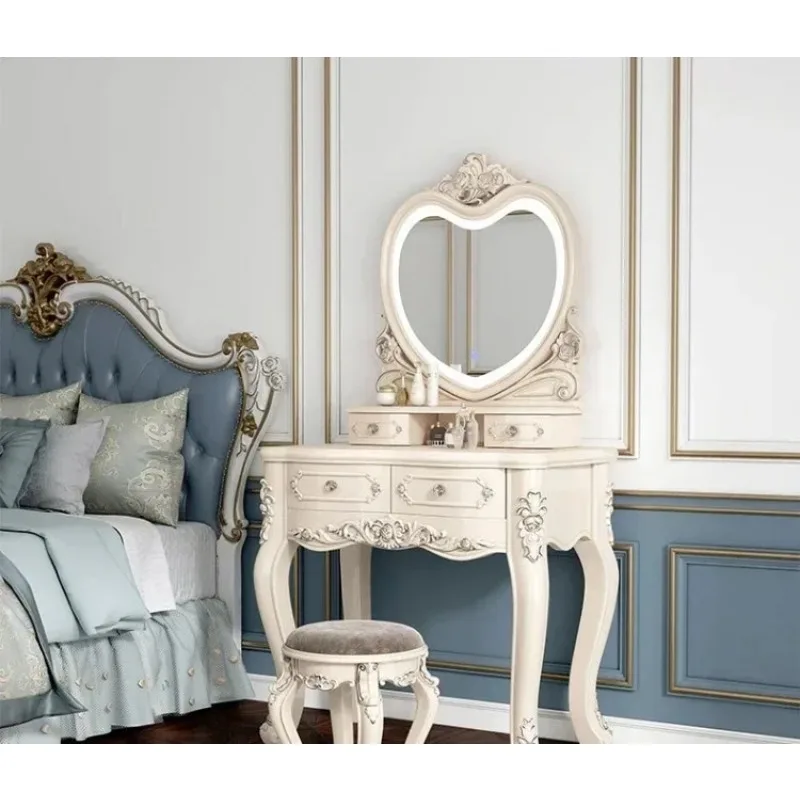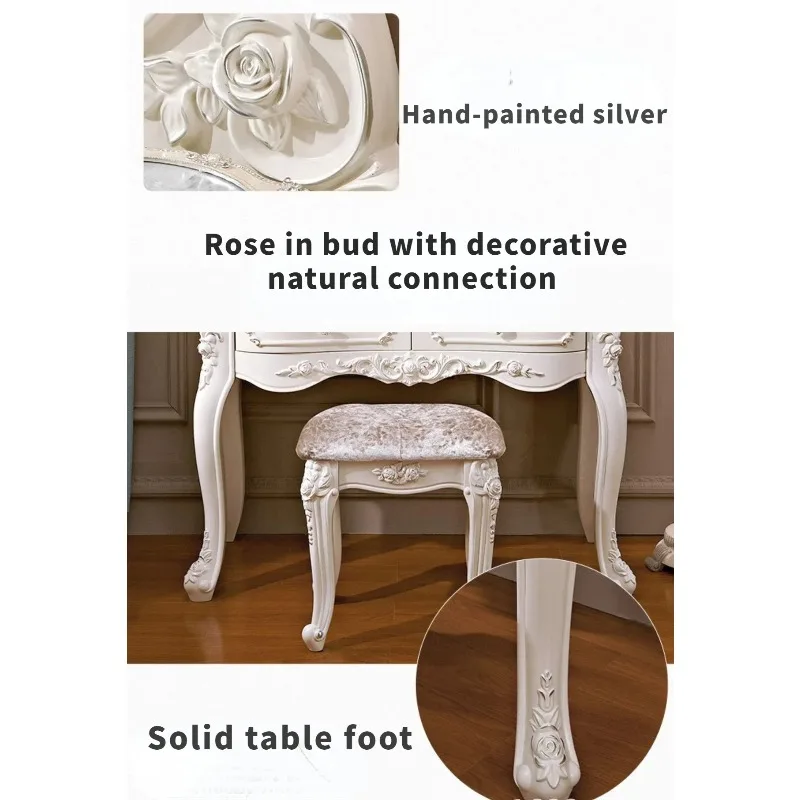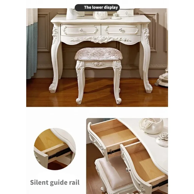 European Dressers Vanity Table Set with Mirror White Makeup Desk with Drawers & Stool – Small Wood Dressing Table for Bedroom