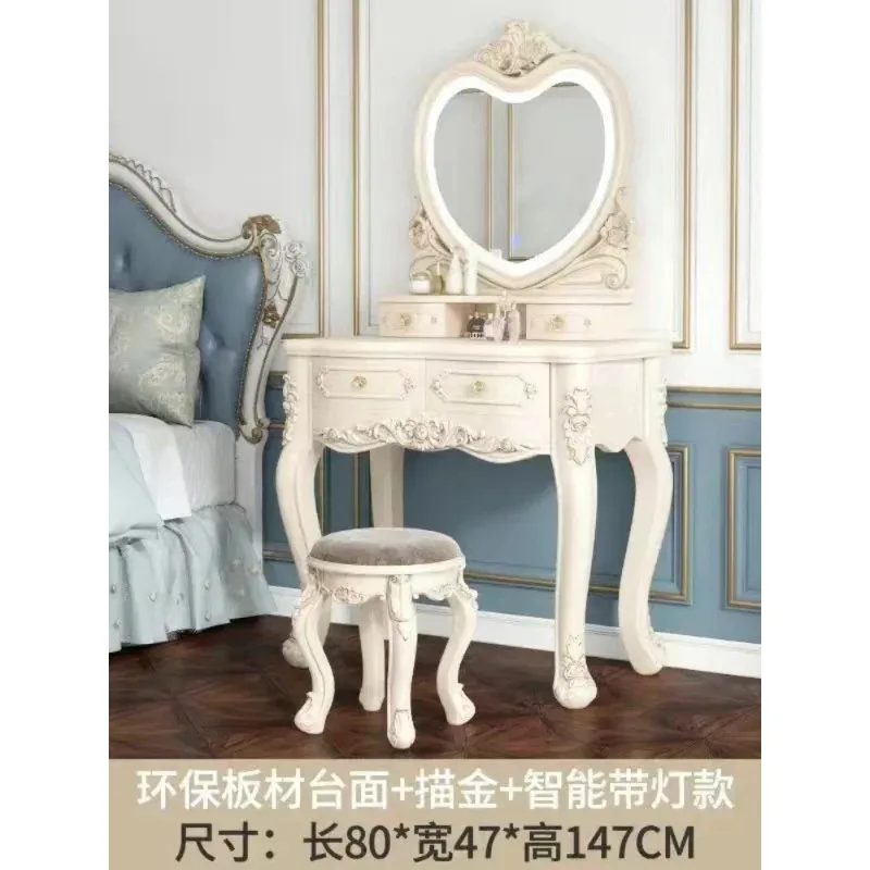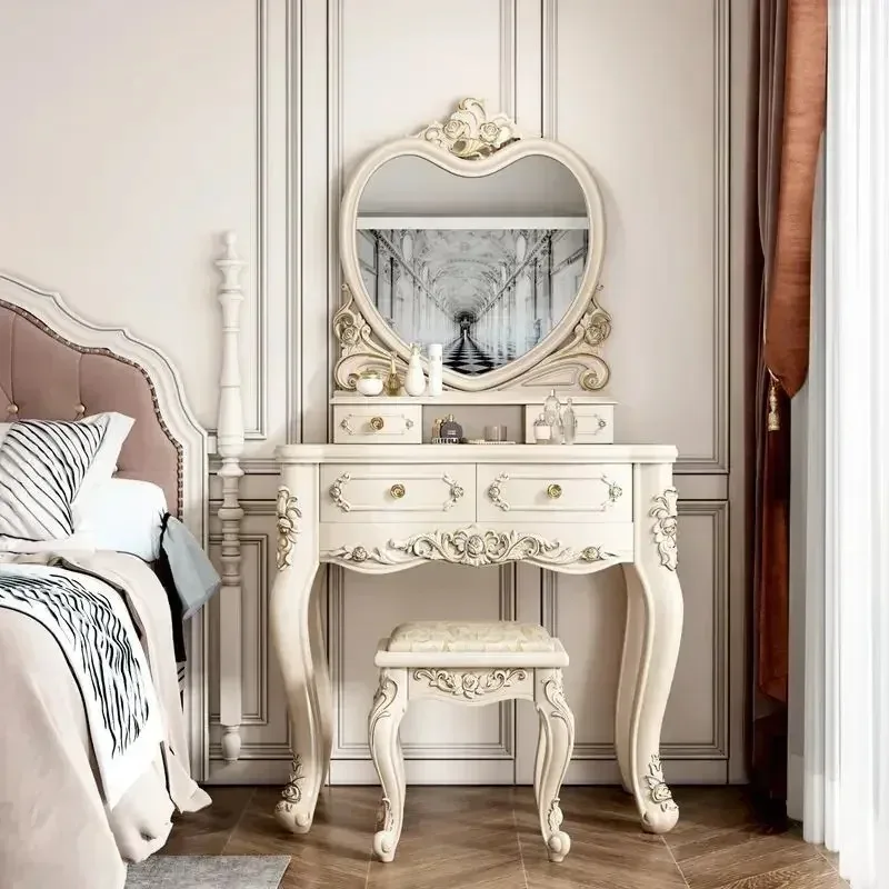 European Dressers Vanity Table Set with Mirror White Makeup Desk with Drawers & Stool – Small Wood Dressing Table for Bedroom