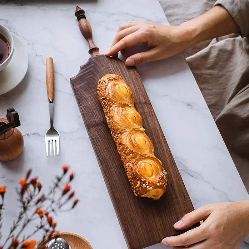 French Vintage Bread Board, Premium Black Walnut, Handmade Natural Texture, Durable Polished Smooth, No Rough Edges
