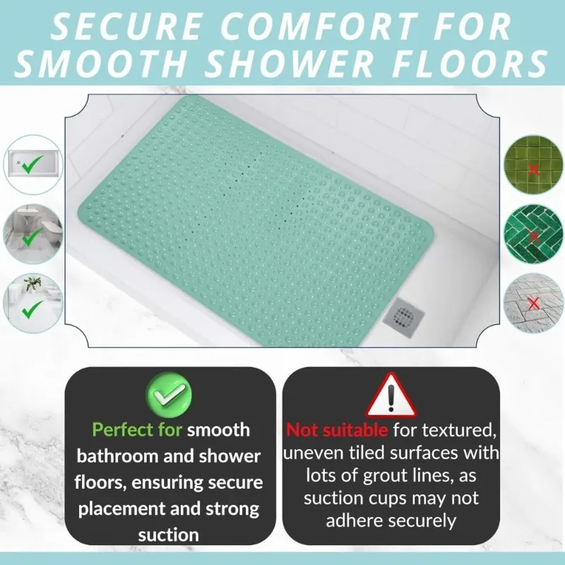 Comfortable and durable, made of safe PVC material, providing safety protection for yourself, your children and elderly parents or grandparents. Please note that this shower mat is only suitable for smooth non-textured surfaces