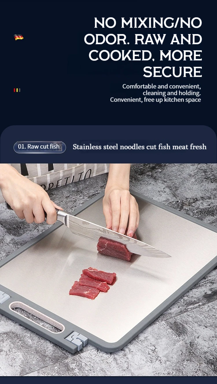 • Food Grade Material :Made from high-quality stainless steel, this cutting board is safe to use and won’t contaminate your food.
