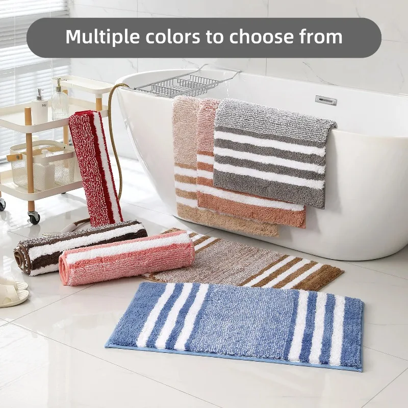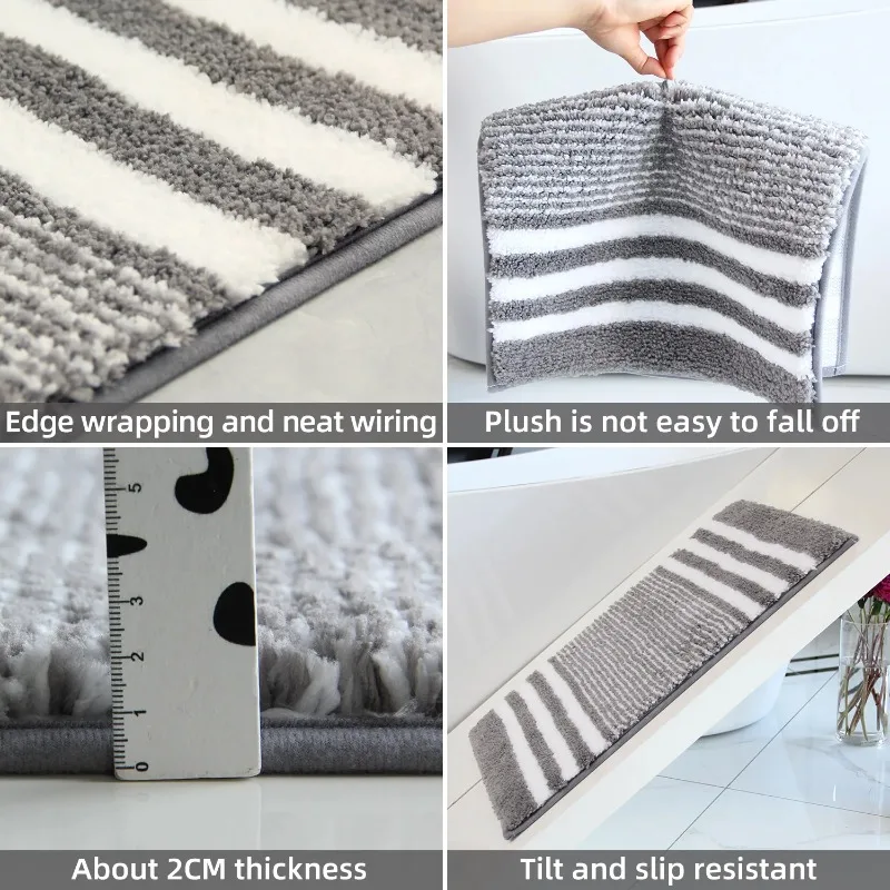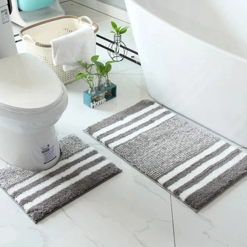 Striped Microfiber Bathroom Carpet Set 2-piece,waterproof,non-slip and Quick Drying,machine Washable,TPR Backing, Medium Velvet